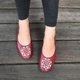 - 深红的牛皮上绣着复古华丽的花漾 成熟典雅的配色、细致的绣线 舒适的娃娃鞋设计 适合复古有个性的妳