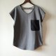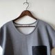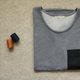 采厚棉质弹性布搭上麂皮的造型大口袋,异材质的结合、相似颜色的拼贴;连袖无肩线的随性感呈现出一种舒适却又有低调质感的独特性