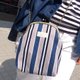 - 斜纹布种配上仿佛像牛仔裤般的咖啡色印刷车线,整体是基本的条纹图案 好搭又不失趣味!