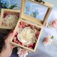 .以索拉白牡丹花为主制作的木盒掀盖干燥花