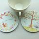 / 商品说明及故事 /松鼠花环水彩图案 / 尺寸/约11cm / 材质 /耐热陶瓷吸水杯垫+软木(较黑色泡绵环保) 使用环保油墨安全.安心 / 产地 /台湾莺歌烧制