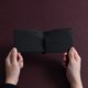 这款以简约、轻薄为主要设计的短夹,双边卡层一体成形,共可放八张卡片,整体只有26公克重、0.6厘米薄,采用环保纸张以纯手工缝制而成。