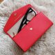 -需要收纳眼镜时,皮革片可扣住靠内的子母扣变成镜架,收纳物品时,可扣住靠外部的子母扣变成摊平状态,即可收纳物品。