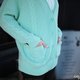 湖水绿麻花飞鼠袖针织外套 NT1980