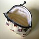 表布 白底国旗图样、里布 米白线条、口金 亮蓝、蕾丝缎带随机。