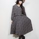 Description: Fairy Farm Factory(Vintage)深蓝色碎花大波浪裙摆长袖洋装