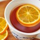 2.于热红茶中加入适量柳橙果干,增加红茶香气。