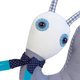 赛门蜗牛的身体是粉灰色带一点蓝调的棉布,螺旋以白色呈现,脖子上围着一条深蓝色有着可爱白点点棉布围巾,围巾尾端细致地连接着土耳其蓝的不织布。耳朵与背部是优雅的的浅粉灰色格子布,相当俱有创意与温润感。小米蜗牛有着圆圆的肚子,可作为小抱枕,更因为有柔和的音乐铃声,不只是装饰,也可让宝贝在轻轻地音乐中悄悄睡去。是一件相当迷人的居家梦幻逸品。