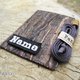 木松布料印在一块麻质纱布上,稳固而不易脱落;卡套两面均是水松布,中间夹了一层皮糠纸;附有挂颈的颈绳