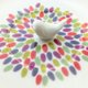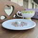 ❤杯盘皆有精致巧思设计,盘子上有白鸟,杯内含有文字。