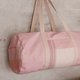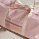 跟淡紫色拉链、粉色帆布、米色提带不停地比对