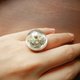 商品尺寸:玻璃罩直径2cm . 戒围:5cm可调大 商品材质:镀白金. 玻璃罩 雪白的小花 再度衬上经典蓝色绣球花 大胆突兀的戒指风格 给有个性又喜欢大自然的你 **虽不易破.但也请勿刻意大力撞击** 产地/制造方式 台湾手创