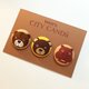 每组包含3个直径4厘米的胸章,动物系列A包含小熊、河马、老虎。