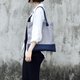 [材质]:麻布、蓝色牛皮