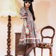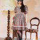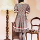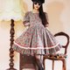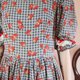 Description: F999(Vintage)深蓝灰色格纹草莓布花大波浪裙摆短袖古着洋装(婚礼/野餐/派对)