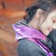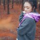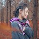 - 紫色系的围巾,围起来后面有一个帽子可以戴上