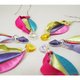 以丝线缠绕于造型片上制作而成-缠花;是台湾客家独特的“百年优美工艺”,以往用于婚嫁中,有分享幸福的吉祥语意,以细如发丝的线,透过细腻的缠绕功夫于造型片上,呈现出丝绸般的精致光泽。