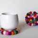圆形隔热杯垫 纯手工, 用新西兰羊毛做抗敏感处理, 送到尼泊尔染色并扎实的缝成可爱缤纷的杯垫 直径10厘米