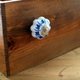 **英国复古波浪青花把手** **■ 规格:直径4.5cm** **■ 材质:**陶瓷、金属 **■ 品牌介绍:**Rex **♥ 店长选物:** 手绘白瓷上的紫罗兰,传达朴实中的美好,从小地方为家具增添老时光的怀旧气息。 **■ 购买前请注意事项:** 陶瓷上的图样为手绘完成,不同于机器印刷般工整,有着老时光的复古感,把手背部可能会有不影响外观之细微缺角,属正常烧制过程中耗损现象,购物前请特别注意,谢谢您! 产地/制造方式 英国
