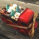 桌上放着小货卡提前实现了小小的愿望,这里满载着具圣诞氛围的罗丹斯菊、鹤顶、石砾..等干燥花材与丰收的果实,以及象征贝纳松的圣诞小树。
