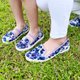 第一眼见到这款日本印花布,马上被它的鲜丽色泽与饱和度所吸引。皮质修饰滚边搭配它的好质感,清爽感编织绳的鞋身装饰散发浓厚渡假气息。
