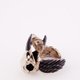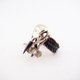 White bronze crow skull ring with smoky quartz stone and oxidized antique color
