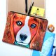 离合器包由独特的图案画。 从画布两侧的水彩画和内衬缝制。
