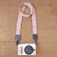 印花乐棉帆布材质,2cm宽版背带减轻相机重量压力,两端可调整塑胶环,适应多种机型。