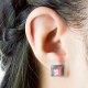 Green and pink lame, is a pyramid-shaped earrings that confined the Aurora with crystal resin.