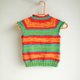 - 水彩画风格美丽诺羊毛手工编织儿童背心(橘绿条纹)