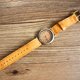 手工缝制真皮表带,独特黄色油蜡皮,皮革纹理特别漂亮,坚韧而柔软,特别舒适耐用