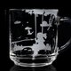 * 圖案用噴砂方法作物理性打磨玻璃表面,形成深度和立體感。沒有用化學藥水及化學方法製作,客人可方心飲用。圖案永不褪色及消失,用刷子清潔也無問題,唯客人請注意透明杯面長期刷拭或會有花痕啊,用海綿清潔就足夠了。如磨砂表面遇到油脂(例如手指上的少量油份)會變得半透明,只要用肥皂水輕抹一下便會乾淨了。