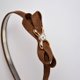 仿皮绒面做成的双层蝴蝶结,很有立体感,配上蝴蝶结丝带扣跟小钻,更显质感。