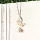 < 白纹理粉红x黄手绘蝴蝶干花玻璃球颈链 >
