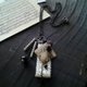 宽4cm和高4cm的菱形琴谱,作复古色处理后再黏贴金属黑玫瑰。虽然是纸张作的饰品,但经过处理不用担心变形和怕水。