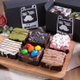 布朗尼加入综合坚果一起烘烤,淋上黑熊特调香喷喷花生巧克力,在用白巧克力手绘宽格纹,美式休闲风下午茶的完美搭配。