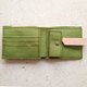 品名:橄榄绿布织布缀有牛皮皮革短夹