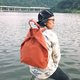 包体以厚帆布制作,包内有薄帆布内里和大内袋,容量足够可放入13-15寸笔电,故取名啤酒肚。包口采押扣+勾扣的闭合方式,只需把开口押扣压好,再把包包两边的小耳朵向中间的扣头勾好即!