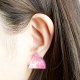 粉红色亮粉亮片封存在透明树脂里的三角锥耳环里
