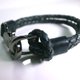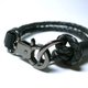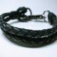 碳黑色 不规则手染 植物鞣的六股皮绳 个性扣环 手环