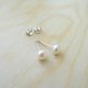 + 天然淡水养殖珍珠:正面为直径约 6 mm 的圆形,侧面如同小圆面包般的扁圆形,皮光饱满色泽温润,相当白皙无暇。每一颗珍珠色泽形态稍不同,我们尽量挑选可成对且极微暇者制作。