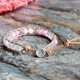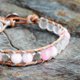 【材质】粉玉髓6mm、白玛瑙6mm、真皮牛皮绳、编织线、纯银爱心、纯银扣