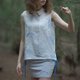 LLANO睡眠系列透气棉麻蝙蝠满印 绑带背扣复古背心衬衫 M码