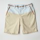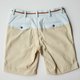 裤角翻起时的织带外露设计搭配上巧克力色的纽扣'