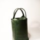 两面对称的手把,仅有一边与带身缝合,营造出阿挪多姿的体态,
