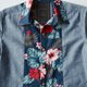 - Lyocell纤维纱茶花的印花与素色天丝棉麻混纺面料的剪裁设计衬衫