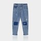 ▲“分离五官/破洞补丁牛仔裤”