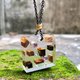 此款木坠正面和四边抛到通透, 背面作雾面抛光处理, 很有层次变化, 正反两面的反差和不同的水晶颜色, 搭配也更多样化。