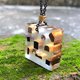琥珀系列的开发过程其实很有趣, 在和木艺老师合作复合媒材的作品开发时发现, 很多高级木料在老师们制作完桌椅或大件作品后剩余的边料, 老师们都因为尺寸太小无法使用而拿去烧水或烤鸡, 眼看着桧木, 胡桃木在火炉里劈哩啪啦响, 总让我觉得舍不得. 后来转念一想这些边料拿来当饰品的宝石其实是个很棒的选择, 木料独特的纹路,木质香气都是独一无二的.