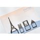金属迷你城市书签包括了4个以不锈钢雕刻的着名巴黎地标:艾菲尔铁塔 (Tour Eiffel), 新凯旋门 (La Grande Arche), 巴黎圣母院 (Cathédrale Notre Dame de Paris) 以及 圣心堂 (Sacré Coeur)